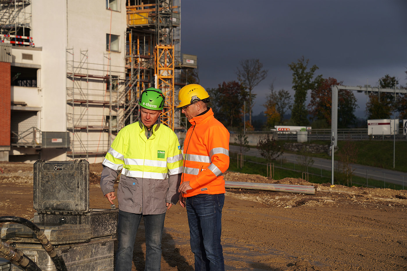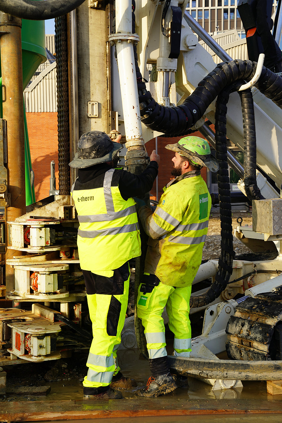 Die Installation der Sonden erfolgte durch die Bohrfirma E-Therm AG, die vor Ort mit drei Geräten parallel Bohrungen durchführte. Die Arbeiten erforderten präzise Planung, umfangreiches Material und höchste technische Expertise.