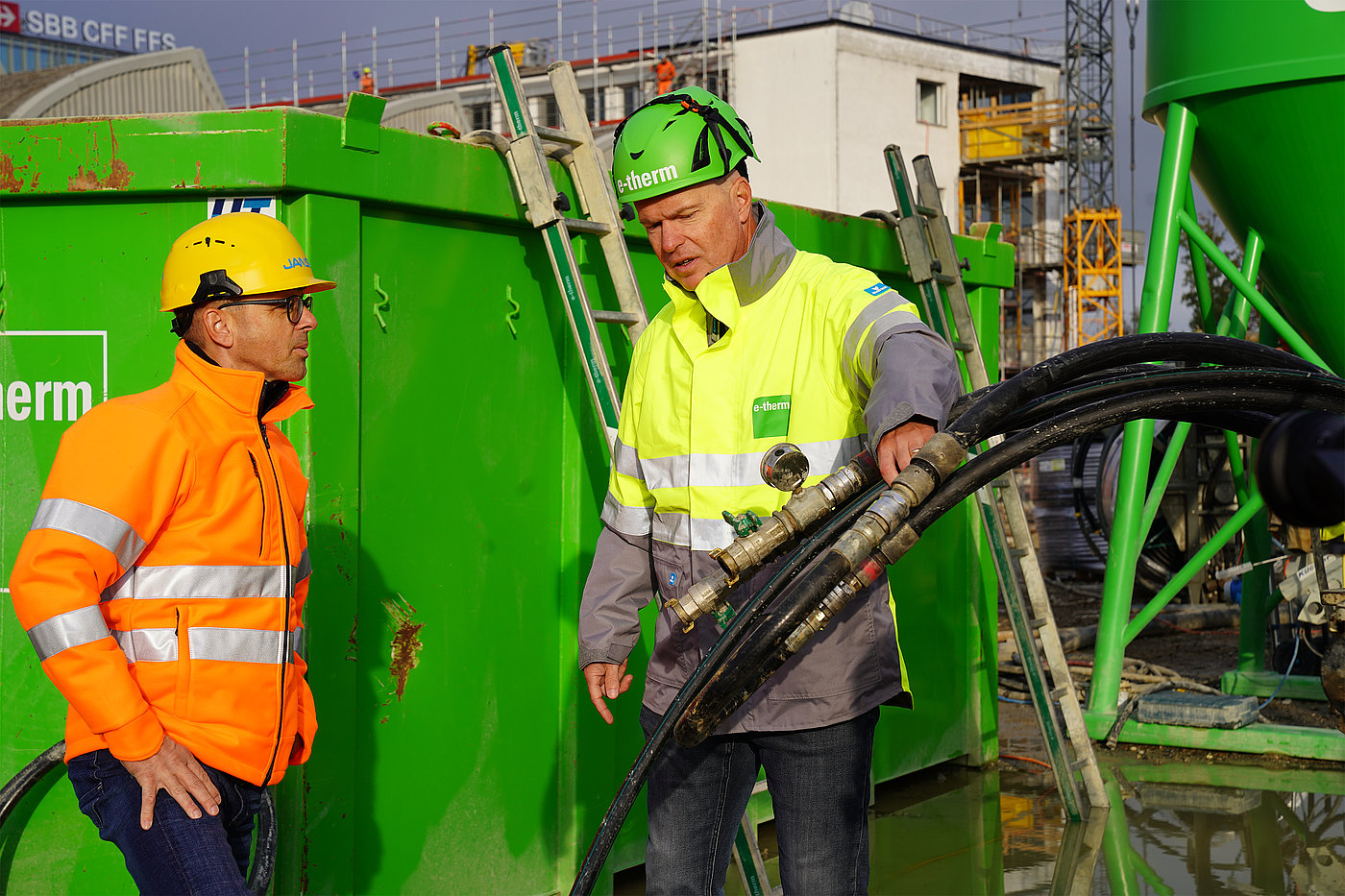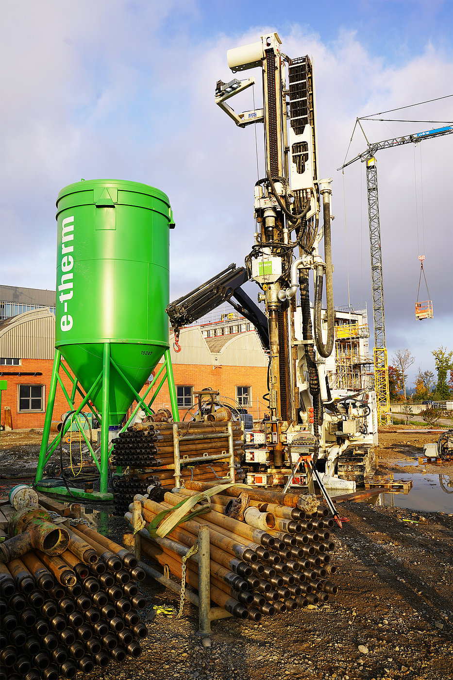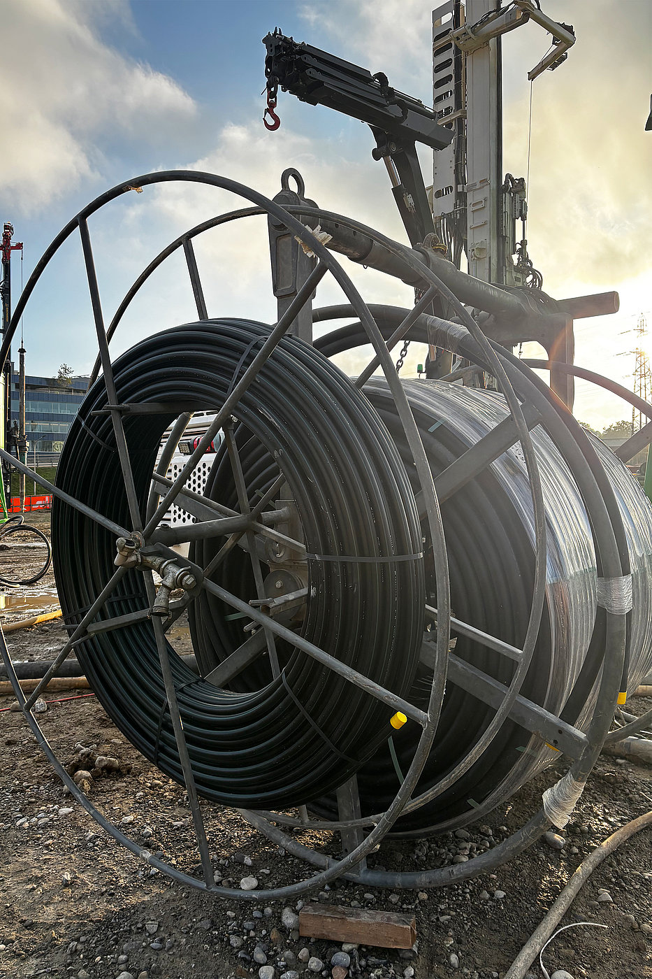 Für die nachhaltige Klimatisierung der gestapelten Stadt Wankdorfcity 3 setzen wir auf Energie aus dem Erdreich. Die Wärme wird über Erdwärmesonden genutzt, um Gebäude effizient zu heizen und zu kühlen. Im Rahmen des Projekts haben wir 196 JANSEN geotwin Erdwärmesonden mit einer Länge von jeweils über 200 Metern produziert und geliefert. Diese hochwertigen Rohrsysteme bilden die Basis für die geothermische Energiegewinnung.