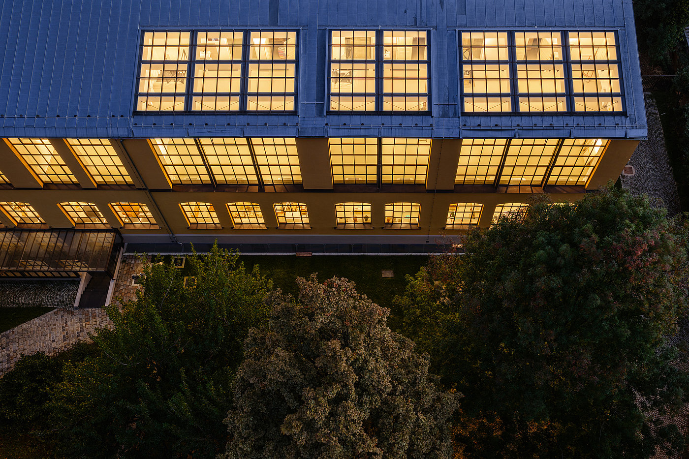 Historic-looking studio glazing made of highly thermally insulating steel systems