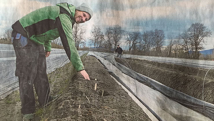 Le producteur d’asperges Fabian Kummer du Schmitterhof à Diepoldsau, présente une solution peu conventionnelle. Kummer chauffe ses champs avec la chaleur perdue d’une entreprise industrielle proche. Pour mettre cette idée ingénieuse en œuvre, environ 22 km de nos tuyaux d’alimentation ont été posés dans ses champs.